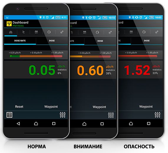 Дозиметр ДКГ-РМ1904А оповещает пользователя о превышении установленных порогов посредством красного светодиода и звукового сигнала. Результаты измерений автоматически сохраняются в энергонезависимой памяти дозиметра через заданные интервалы времени в диапазоне 1 минута-18 часов. Установку иных пороговых значений и/или сброс накопленной ЭД можно произвести при помощи приложения POLISMART, подключив прибор к мобильному устройству или ПК. Мобильное приложение POLISMART также позволяет отображать текущие значения ЭД и МЭД, измерять, записывать и отображать треки, определять свое географическое местоположение с использованием GPS.