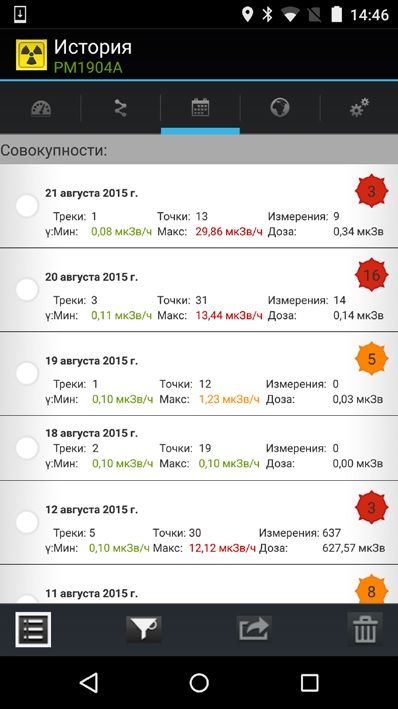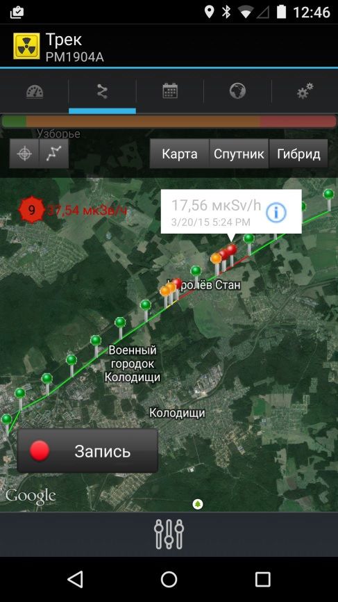 Запись треков перемещения пользователя с отображением радиометрических данных на электронной карте