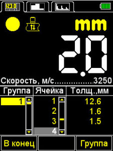 Применяется для оперативного определения толщины изделия с отображением на экране прибора ранее сохраненных результатов (группы — ячейки в группах — результаты).