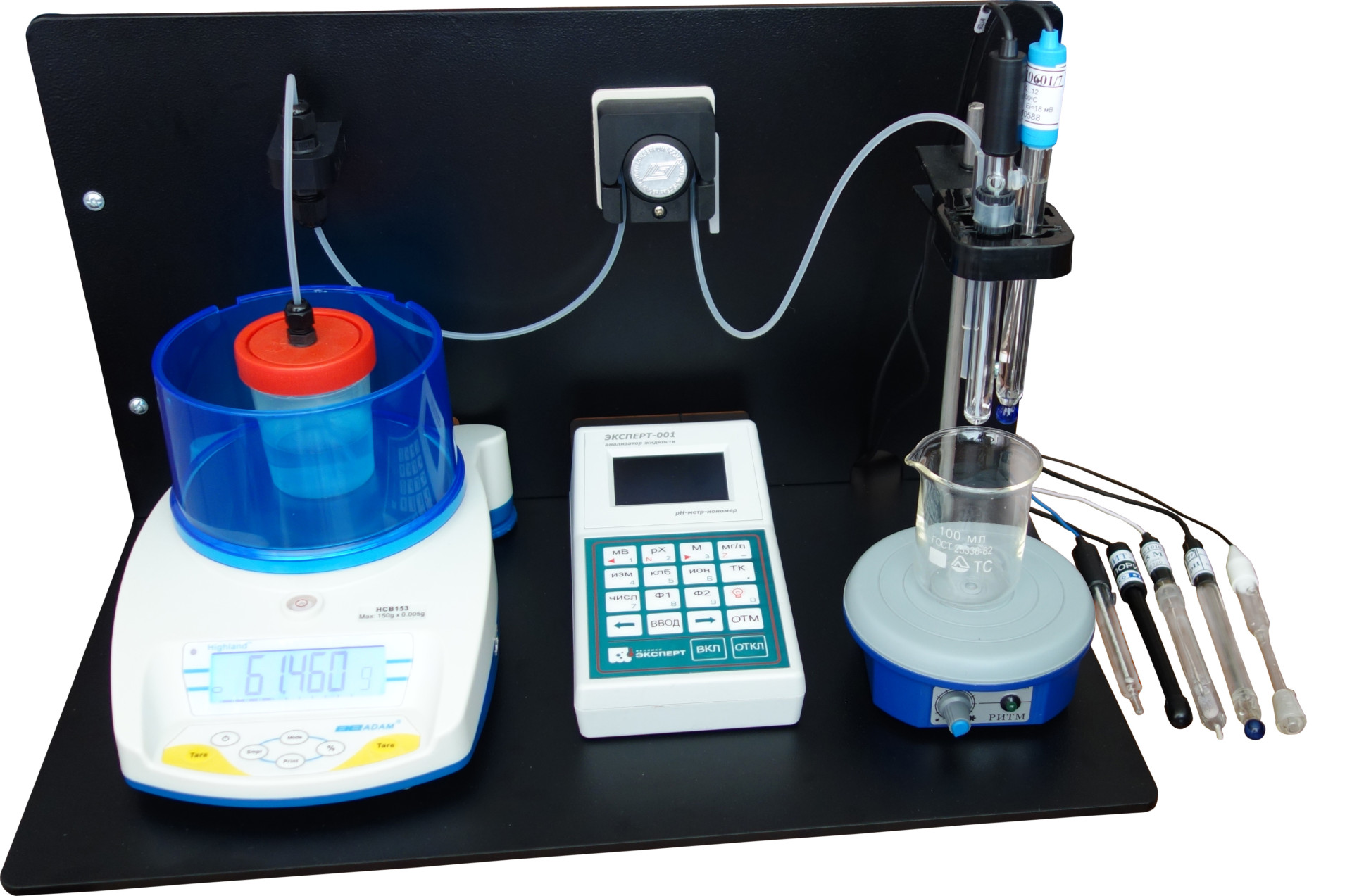 Комплект включает оборудование для автоматического титрования потенциометрическим методом (измерение ЭДС электродных систем анализатором «Эксперт-001») Представляет собой комплект «Титрион-1» (или «Титрион-1А»), укомплектованный электродными системами.