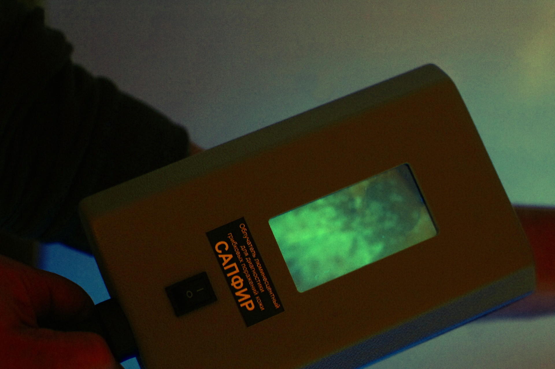 Облучатель люминесцентный (лампа Вуда) «Сапфир» — предназначен для люминесцентной диагностики микозов (грибковых заболеваний) и некоторых видов дерматозов у людей и животных. Применяется в больницах, поликлиниках, санаториях, кожных диспансерах, в детских учреждениях при проведении профилактических осмотров.