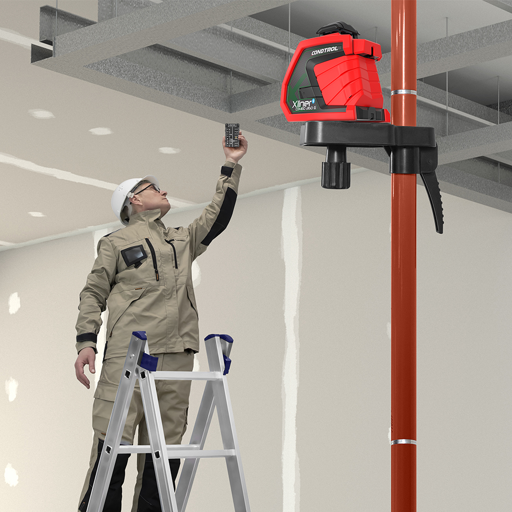 Лазерный отвес — CONDTROL XLiner Combo 360 G строит отвесные точки, что позволит точно и без труда производить перенос отметок с пола на потолок.