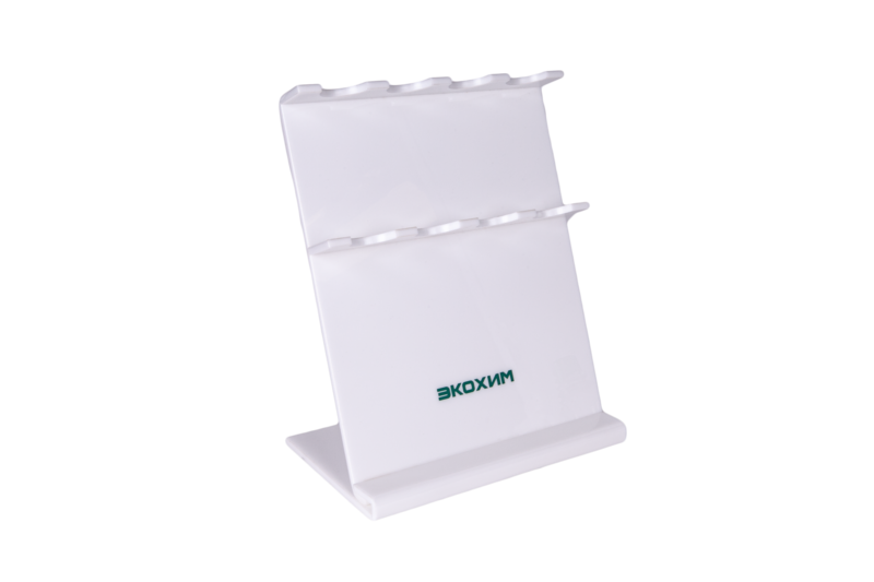 • Пластиковые вертикальные стойки-держатели на 4 места. На штативе так же нанесена надпись «Экохим». Можно использовать для хранения дозаторов любых производителей.