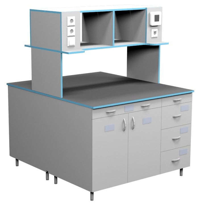 Стол островной для работы стоя СЛО НВК 1200 МОН (1218*1520*1650) Описание: Столы островные лабораторные предназначены для комфортного проведения физических и химических исследований и работ стоя с применением лабораторных приборов, оборудования и инструментария в лабораториях различного типа (производственных, научных, учебных и т.п.). Особенности: Широкий верхний ящик позволяет удобно хранить холодильники и термометры. Ящик снабжен специальным противоскользящим ковриком. Специальные доводчики позволяют закрывать тумбу бесшумно Встроенная метеостанция Встроенный USB-разъем Полочка для телефона Выдвижной столик Встроенные файлы: удобно подписывать ящики и тумбы Выдвижные ящики направляющих обеспечивают плавное закрывание По заказу столешницы могут быть выполнены из: химстойкого пластика керамогранита (плитка) полипропилена нержавеющей стали монолитной керамики эпоксидного керамзита Дополнительные опции: Кран для газа Замок в нижней тумбе Полипропиленовые поддоны для хранения реактивов Кран холодной воды со сливной раковиной из полипропилена Автономная локальная вытяжка