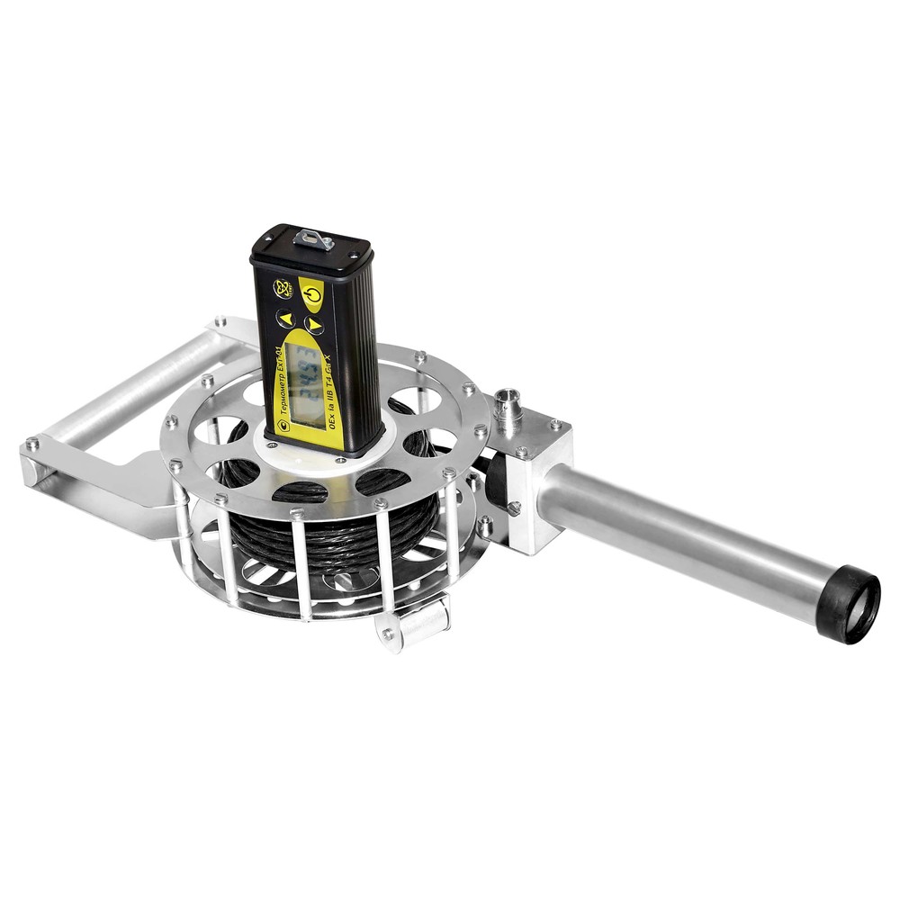 Датчик термометра ЕхТ-01/3-30 выполнен в виде полностью погружаемого зонда с кабелем длиной 30 метров и имеет устройство для его намотки.