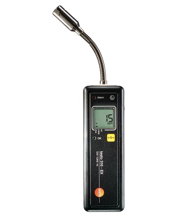 Течеискатель Testo 316-EX соответствует требованиям директив 94/9/EG (ATEX) и используется для локализации утечек таких газов, как метан, пропан и водород. Концентрации газов определяются посредством полупроводникового сенсора в ppm.