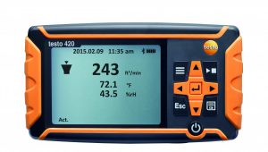 testo 410-2 предназначен для измерений скорости потока, температуры и влажности воздуха. Запатентованный долговечный сенсор влажности Testo гарантирует точные и надежные результаты измерений. Благодаря встроенной крыльчатке D 40 мм прибор идеально подходит для быстрых точечных измерений в воздуховодах. Возможен расчет среднего значения измерений. Компактный и очень удобный в эксплуатации.
