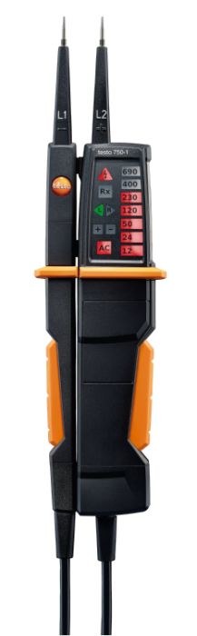 Тестер напряжения Testo 750-3 прежде всего подходит для проверки наличия или отсутствия напряжения в электрической сети. Помимо этого, он также может использоваться для теста целостности цепи, определения направления вращающихся магнитных полей и тестирования устройств защитного отключения. Благодаря вибрации при нажатии на кнопки запуска тест отключения не может быть проведен случайно.