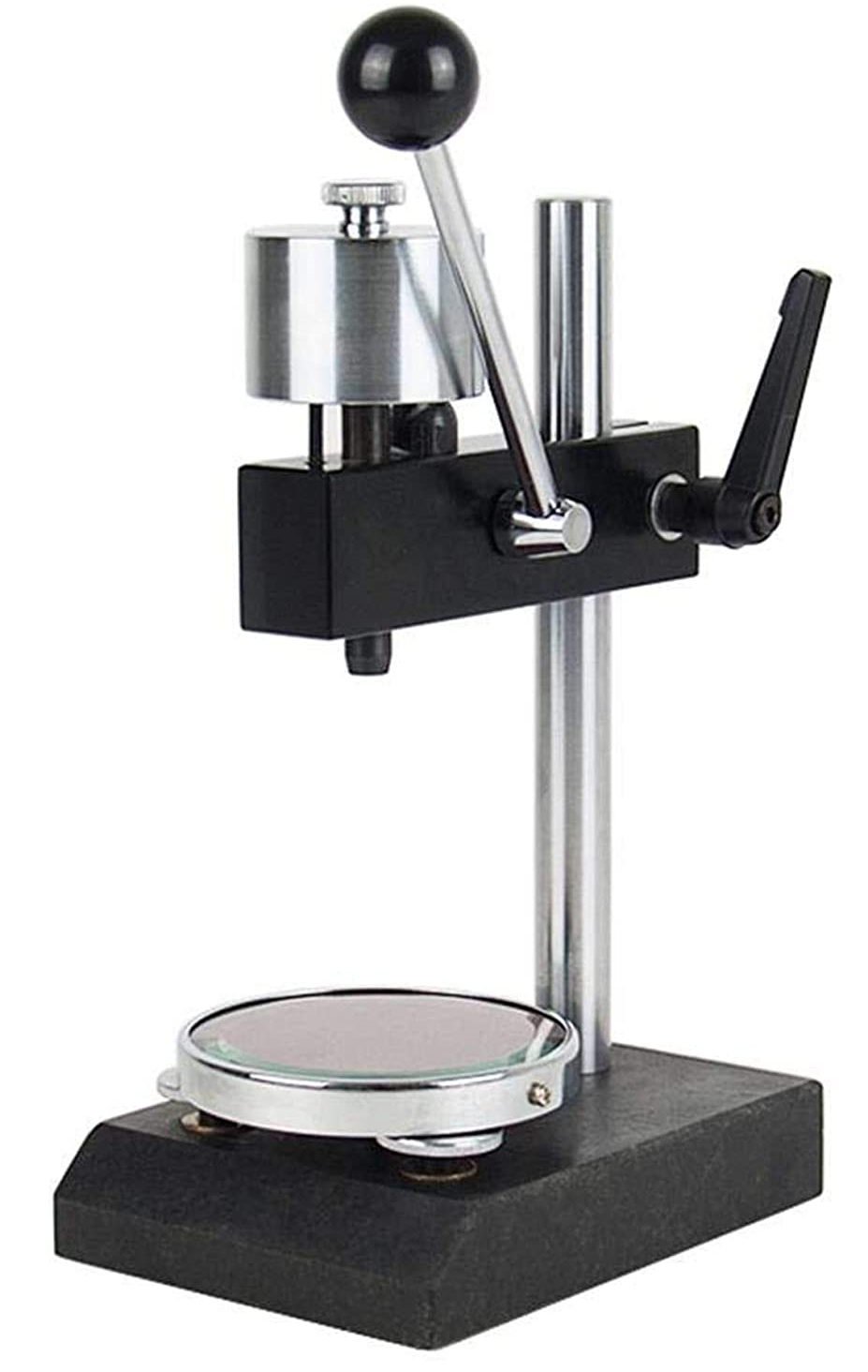 Штатив может быть приобретён совместно с дюрометром ТВР-А, либо приобретён позднее при необходимости его использования, например для массовых испытаний. Ввиду необходимости приложения нагрузки в 8,064 Н (822 гс, что чуть менее 1 кг) при каждом замере (а таких замеров на КАЖДОМ изделии по ГОСТ должно быть не менее 5-ти для вычисления среднего значения твёрдости этого изделия) использование штатива является настоятельной рекомендацией – даже тренированному мужчине крайне тяжело произвести подряд 20…40 замеров с плавным нагружением и дальнейшим удержанием нагрузки ок. 1 кг без колебаний руки с прибором на контролируемом изделии в течение 2…15 секунд согласно требованиям ГОСТ.