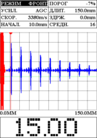 Помимо определения толщины изделия, прибор можно использовать в качестве ультразвукового дефектоскопа, так как на А- развертке возможно отображение сигналов от внутренних дефектов. А функция В-скана позволяет визуализировать профиль контролируемого изделия при сканировании датчиком по поверхности.