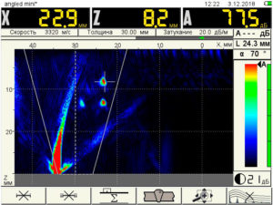 - Обеспечение высокой частоты смены изображений на экране, при которой скорость сканирования вдоль сварного соединения может достигать 50 мм/с.