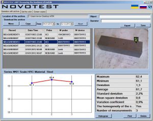 Выполняя измерения твердости объекта контроля твердомер позволяет сфотографировать сам объект контроля и наложить на него измеренные значения твердости в реальном режиме времени с последующим сохранением результатов измерения и фото в архиве измерений прибора.