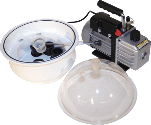 Вакуумная установка для надежной фиксации образца в компауд перед. шлифовально-полировальной подготовкой к металлографическому анализу. Такой способ пробоподготовки применяется для образцов с трещинами, пустотами, порами, при наличии покрытий и прочих задач. Благодаря полной дегазации и заполнению пустот, вы получаете возможность быстро и недорого подготовить сложный образец к исследованию.