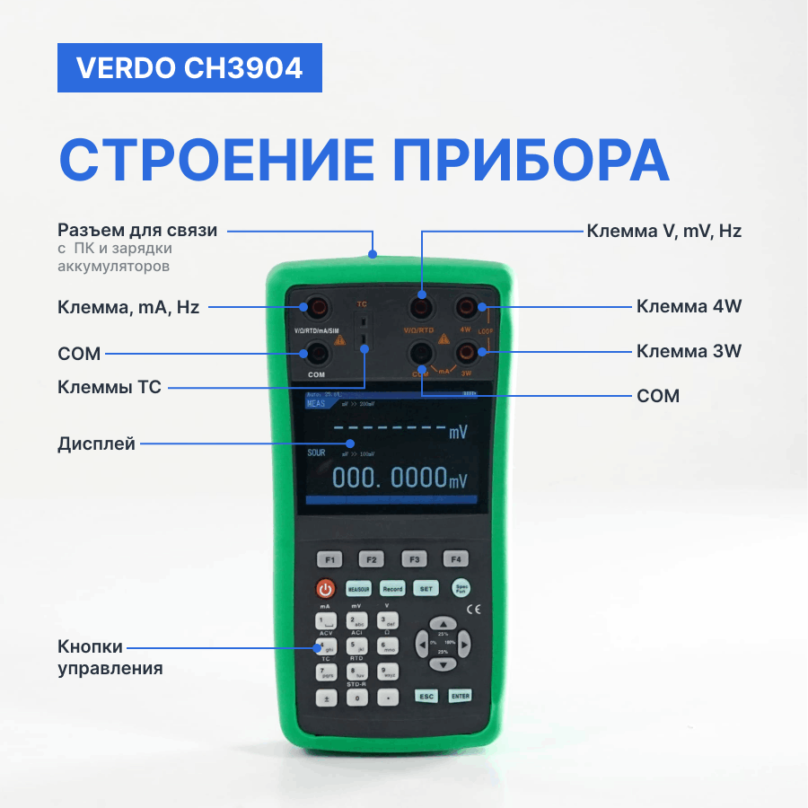 Verdo CH3904 Калибратор портативный с функцией измерения, 0.008%, RTD, TC, F