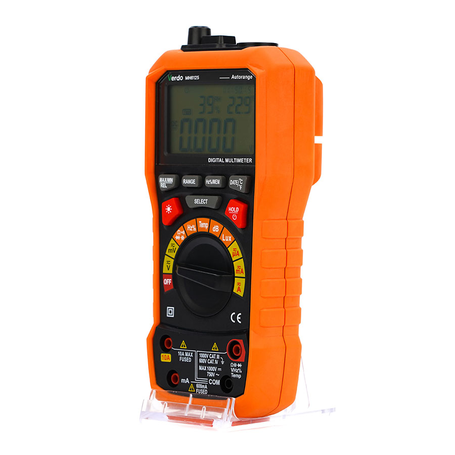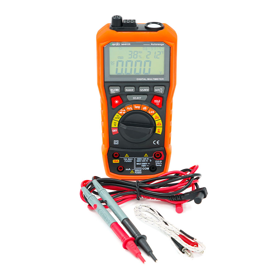 Мультиметр VERDO MH6125 – это многофункциональный ручной цифровой мультиметр с большим многострочным жидкокристаллическим дисплеем, что облегчает лёгкое считывание показаний. Мультиметр оснащен встроенным измерителем параметров окружающей среды (звук, освещённость, влажность, температура). Этот многофункциональный измерительный прибор идеально подходит как для профессионального использования на производстве, ремонта и сервисного обслуживания, так и для обучения и бытового применения.