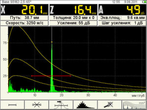 Обеспечивает работу прибора в качестве классического дефектоскопа с наклонными и прямыми преобразователями. При этом сигналы выводятся на экран в виде А-Скана.