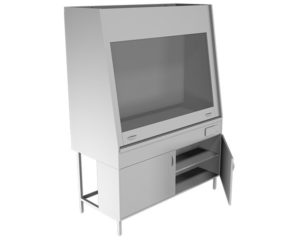 Вытяжной шкаф НВ-1500 ШВ-СПБ.  Лабораторный вытяжной шкаф с одной рамой. Нижняя тумба с полкой. Вытяжные лабораторные шкафы применяется при работе с токсичными и вредными летучими материалами, с чистыми материалами, с растворением или разложением под температурной обработкой, при проведении анализа проб и многих других. Покрытие столешницы вытяжного лабораторного шкафа  выполнена из слоистого пластика. Слоистый пластик обладает рядом преимуществ: устойчив к продолжительному воздействию кислот, щелочей и органических растворителей, ограничено стоек к воздействию высоких температур. Возможные варианты различного исполнения столешниц, стойких к агрессивным материалам, делают вытяжной шкаф незаменимым для любой лаборатории. В комплектацию вытяжного шкафа входит: рабочая камера: подъемная рама с противовесами, покрытие столешницы - полипропилен, две зоны вытяжки светильник люминесцентный с одноклавишным выключателем цельносварной металлический каркас в порошковой окраске регулируемые по высоте опоры 2 электророзетки нижняя тумба с полкой Дополнительная комплектация (по запросу): Столешница из нержавеющей стали Взрывозащищенное исполнение Вентиляционный блок, гофротруба Вытяжка из тумбы.